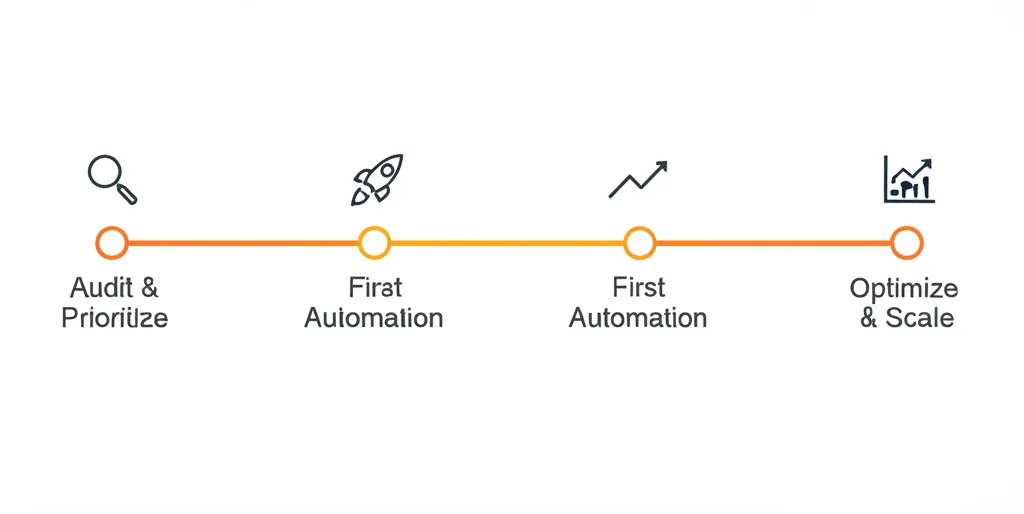 Document every repetitive task across your business. Rank them by time spent and potential for automation. Pick the top 1-2 candidates.
